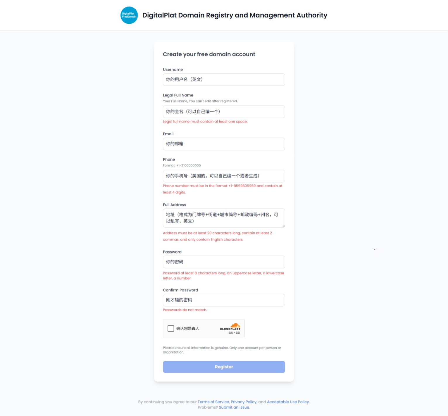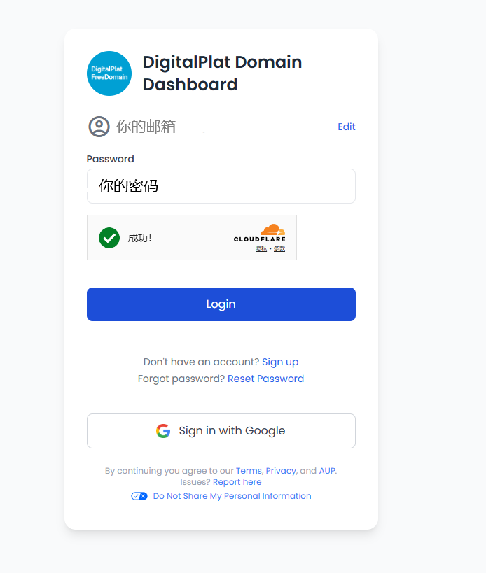 注册DigitalPlat账号