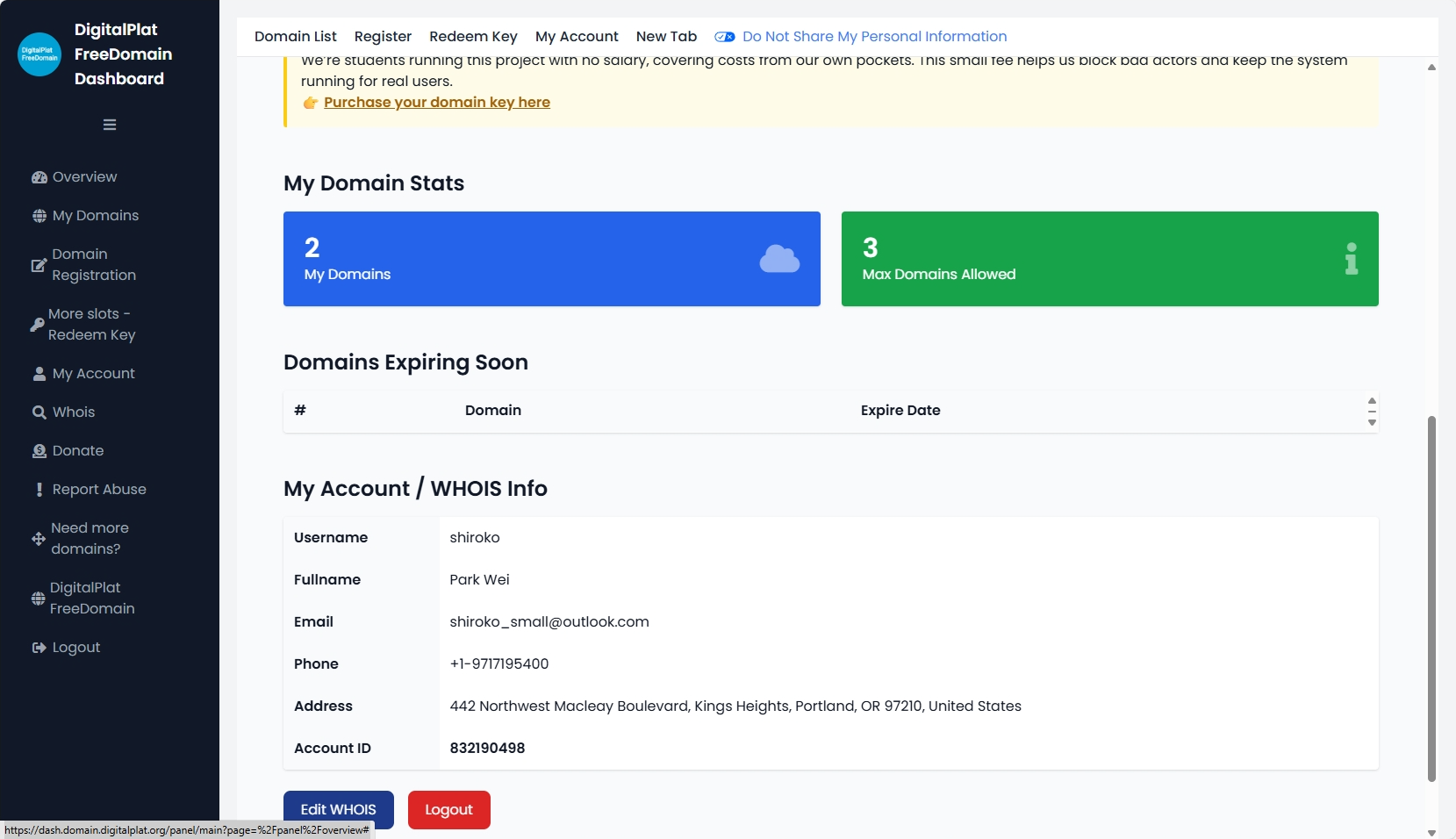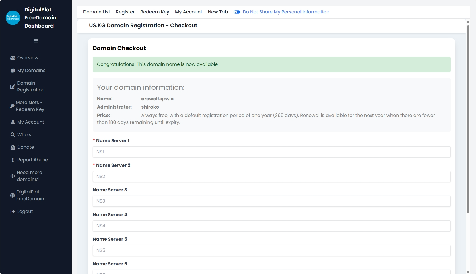 接下来,关掉刚才打开的网页,并打开这个链接:dash.domain.digitalplat.org