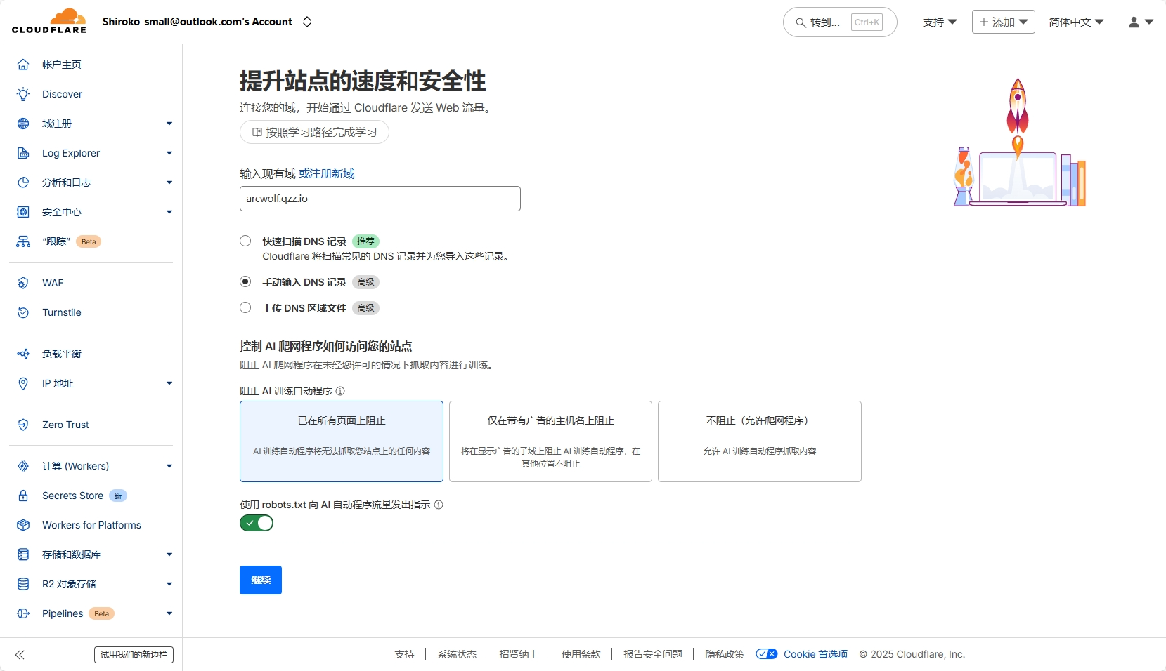 接下来,回到cloudflare,进行最后的步骤。