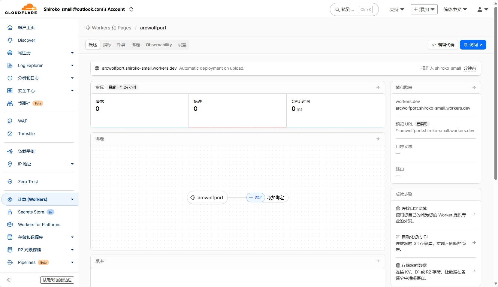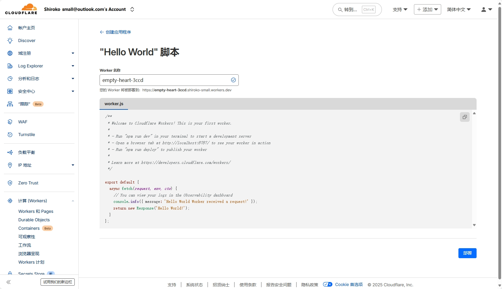 点击部署,完成后点击左上角的返回,回到Worker仪表板。